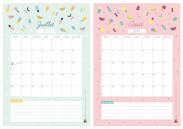 Calendriers mensuels : juillet 2014 (à imprimer - gratuit)