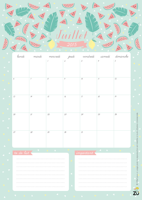 Calendriers mensuels : juillet 2015 (à imprimer - gratuit)